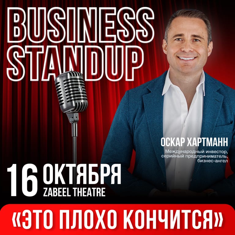 Business Stand Up by Oskar Hartmann at Zabeel Theatre in Dubai This is not a motivational show with applause breaks and catchphrases like “You can do anything.” It’s an honest, unfiltered, and at times provocative conversation with those who live at full speed — building, failing, growing, and building again. Companies. Relationships. Themselves. On stage: Oskar Hartmann — entrepreneur, investor, ranked among the world’s Top-18 business angels, father of four, a man who has built dozens of major businesses, endured equally public failures, and learned to keep his sense of humor through both. This stand-up has no polished diagrams, no pitch decks, no slides packed with KPIs. Instead, it offers reflections on how not to burn out when you’re truly on fire for what you do. How to stay balanced when everything spins out of control — and it happens to fall on your one day off in five years. And how to make the right business decisions when you were raised by a German grandmother. First, you laugh. Then you reflect. And finally, you walk out with ideas that can genuinely change your life. Business Stand Up by Oskar Hartmann at Zabeel Theatre in Dubai at Zabeel Theatre, Jumeirah Zabeel Saray Hotel, Dubai, United Arab Emirates events Business Events Zabeel Theatre – Jumeirah Zabeel Saray Oskar Hartmann