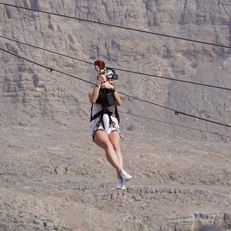 Journey across the Hajar mountains using ziplines in this adventure-filled tour. What To Expect Discover The Hajar mountains like never before and experience fantastic aerial views with the Jais Sky Tour, where you will fly from platform to platform using six exciting zip lines. covering a distance of 5km, and walk across the thrilling Sky Bride. Highlights
