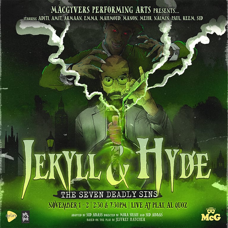 – This Halloween, step into a world where science, curiosity, and chaos collide. Jekyll & Hyde: The Seven Deadly Sins is a fresh new take on the classic story, adapted by Sid Abbas and co-directed by Sid Abbas and Mira Shah. This inventive reimagining follows Dr Henry Jekyll as he pushes the limits of his own mind, experimenting with potions and formulas in search of control, only to discover that his greatest creation may be himself. With striking visuals, stylised movement, and an immersive atmosphere, MacGyvers Performing Arts brings you a play that blends suspense, humour, and imagination to create a theatrical experience that feels both familiar and entirely new. Jekyll & Hyde: The Seven Deadly Sins invites audiences to question how many versions of ourselves we can really contain. Jekyll & Hyde – The Seven Sins at ABA AVENUE, @play, Warehouse B17 93 24B Street, Al Quoz, Al Quoz Industrial Area 2, Dubai events Shows and Theatrical Plays Live at Play, Warehouse B17, ABA Avenue.