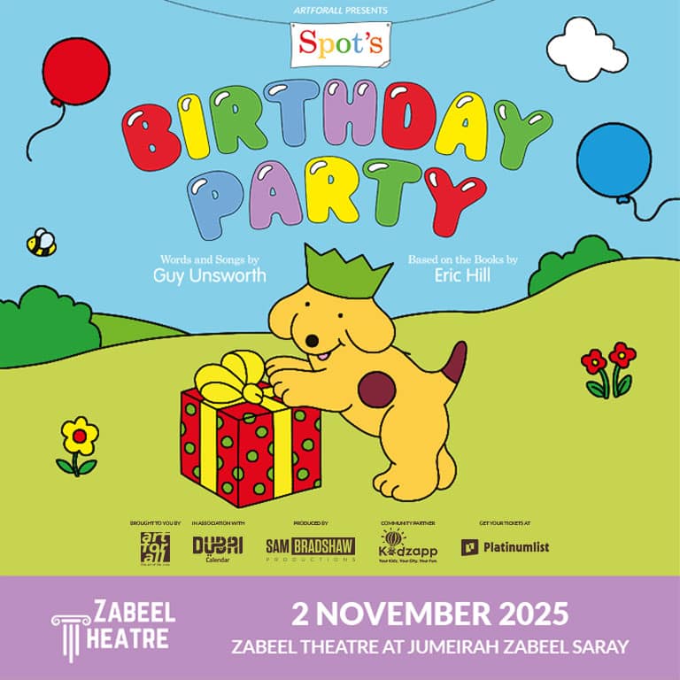 Spot’s Birthday Party at Zabeel Theatre in Dubai Back by popular demand, everyone’s favorite puppy returns to Dubai for a delightful family adventure! This time, Spot is throwing a very special birthday party—and you’re invited to join the fun. Expect party hats, music, dancing, and plenty of interactive games that will have little ones giggling and grown-ups smiling. Alongside Spot, kids can meet Steve the Monkey, Tom the Crocodile, and Helen the Hippo, all coming together to celebrate in style. Inspired by Eric Hill’s much-loved classic Happy Birthday Spot, this brand-new stage adaptation brings the lovable pup and his friends to life in a colorful, engaging, and accessible show. Perfect as an introduction to theatre, this heart-warming experience promises joy, laughter, and unforgettable memories for young audiences and their families. Spot’s Birthday Party at Zabeel Theatre in Dubai at Zabeel Theatre, Jumeirah Zabeel Saray Hotel, Dubai, United Arab Emirates events Shows and Theatrical Plays Zabeel Theatre – Jumeirah Zabeel Saray