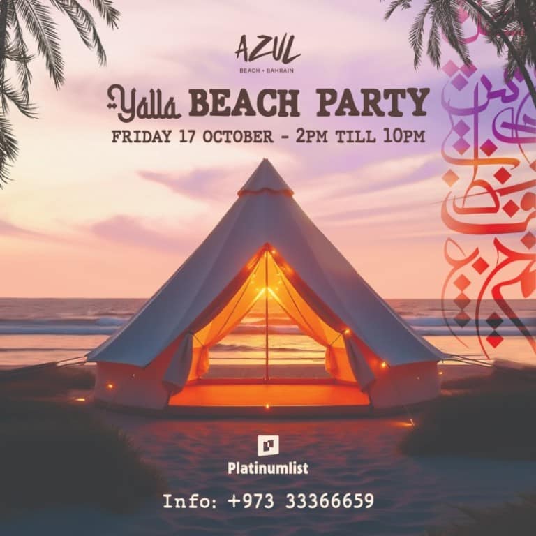 Get ready for an unforgettable day under the sun at the Yalla Beach Party hosted by Azul Beach, Bahrain! Join us on Friday, October 17, from 2 PM till 10 PM, for an epic beachside celebration filled with music, good vibes, and breathtaking sunset views. Set against the stunning backdrop of the Arabian Gulf, this event promises a blend of chilled lounging and high-energy fun — perfect for groups of friends, couples, or solo beach lovers looking to meet new people.